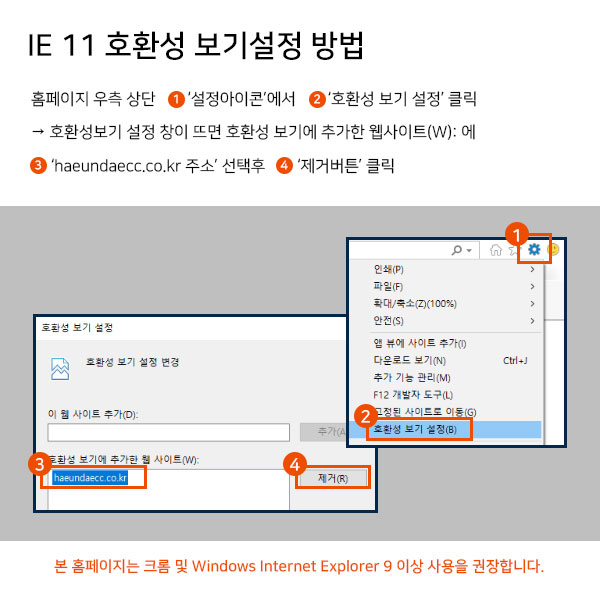 인터넷 브라우저 호환성 보기 설정 제거 안내