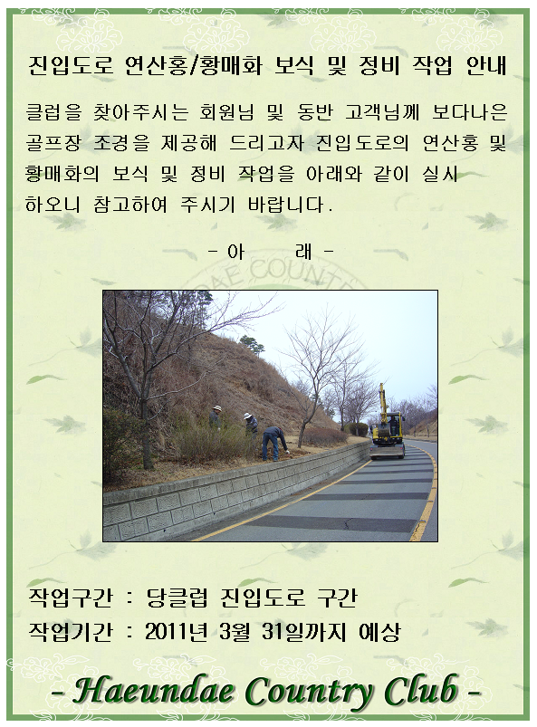 진입도로 연산홍/황매화 보식 및 정비 작업 안내