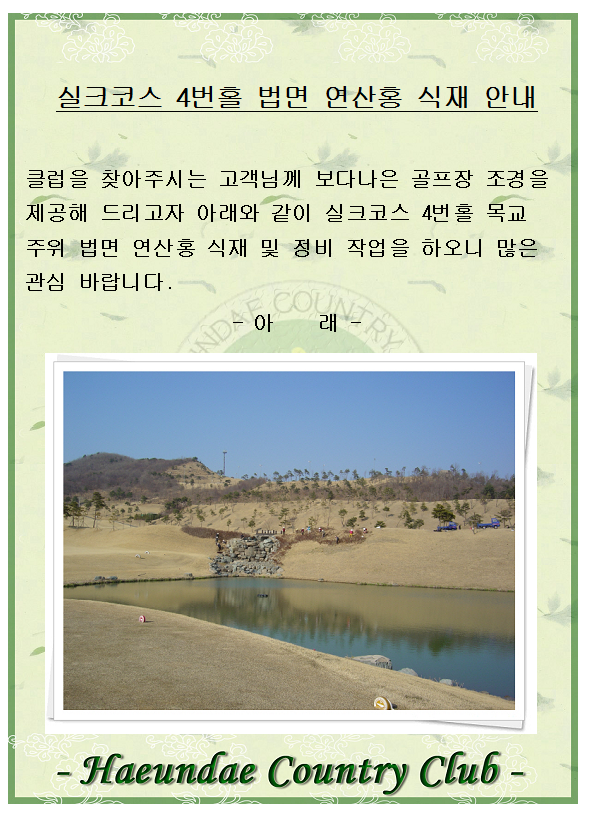 실크코스 4번홀 법면 연산홍 식재 안내