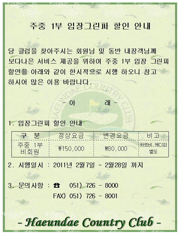 주중 1부 입장그린피 할인안내