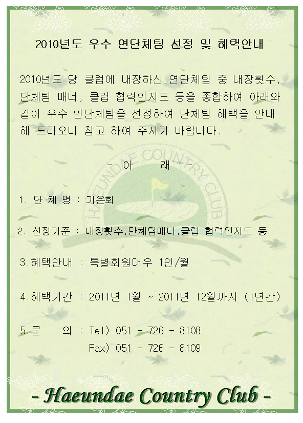 Copyright (c) 2005 HAEUNDAE COUNTRY CLUB. ALL RIGHT RESERVED.