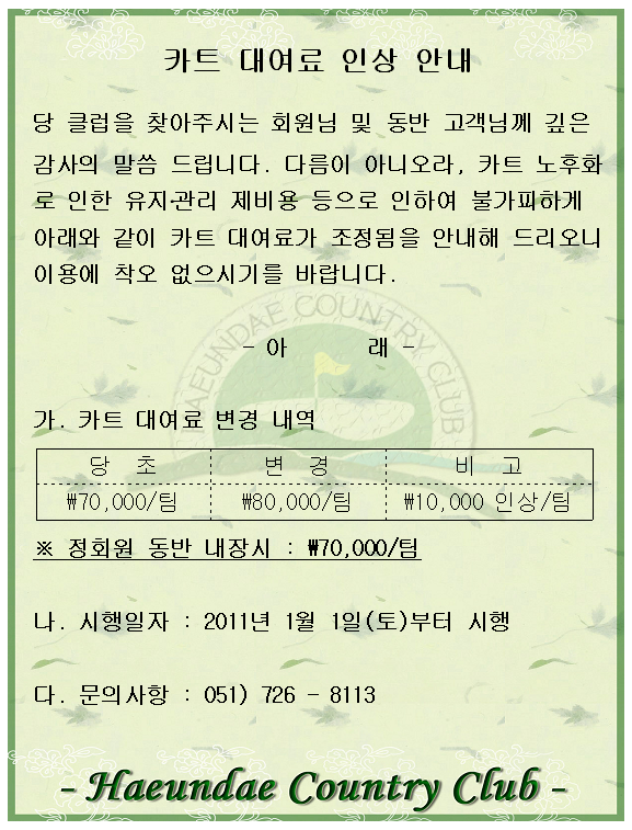 카트 대여료 인상 안내