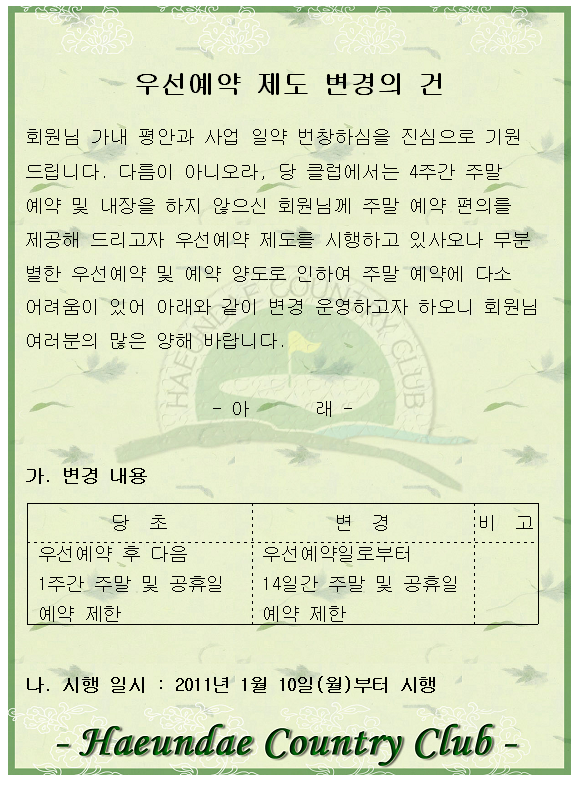 우선예약 제도 변경의 건