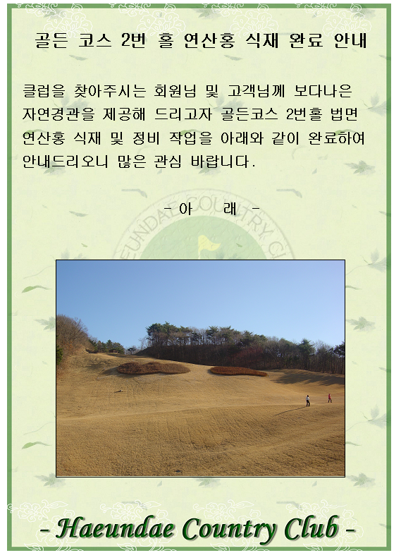 골든코스 2번 홀 연산홍 식재 완료 안내