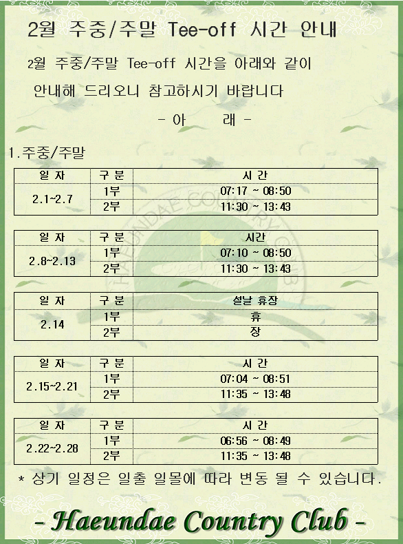 2월주중/주말 Tee-off 시간안내 (수정)