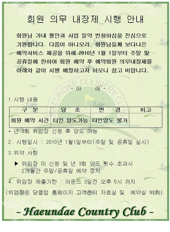회원 의무 내장제 시행 안내