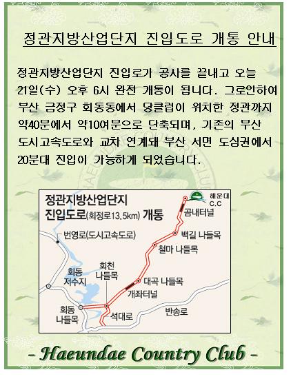 정관지방산업단지 진입도로 개통안내
