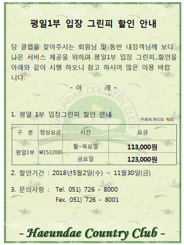 5월 평일1부 입장그린피 할인 안내