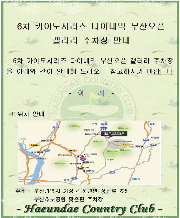 6차 카이도시리즈 다이내믹 부산오픈 갤러리 주차장 안내
