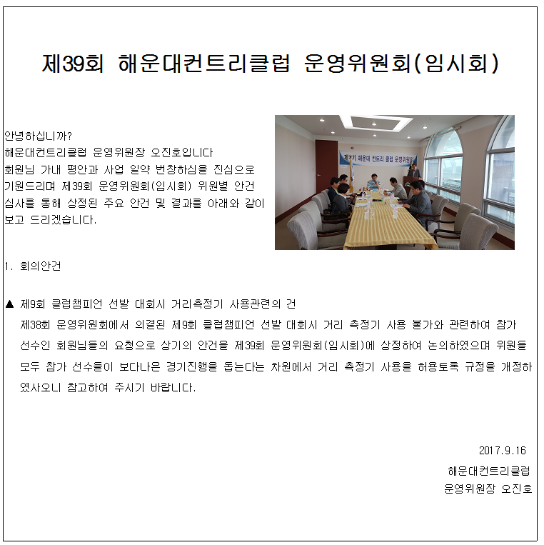 제39회 해운대컨트리클럽 운영위원회(임시회)