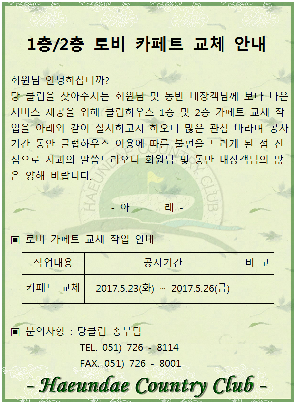 카페트 교체작업 안내