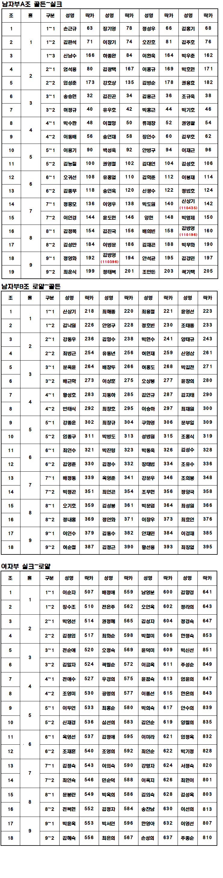 제11회 회원친선골프대회 조편성표