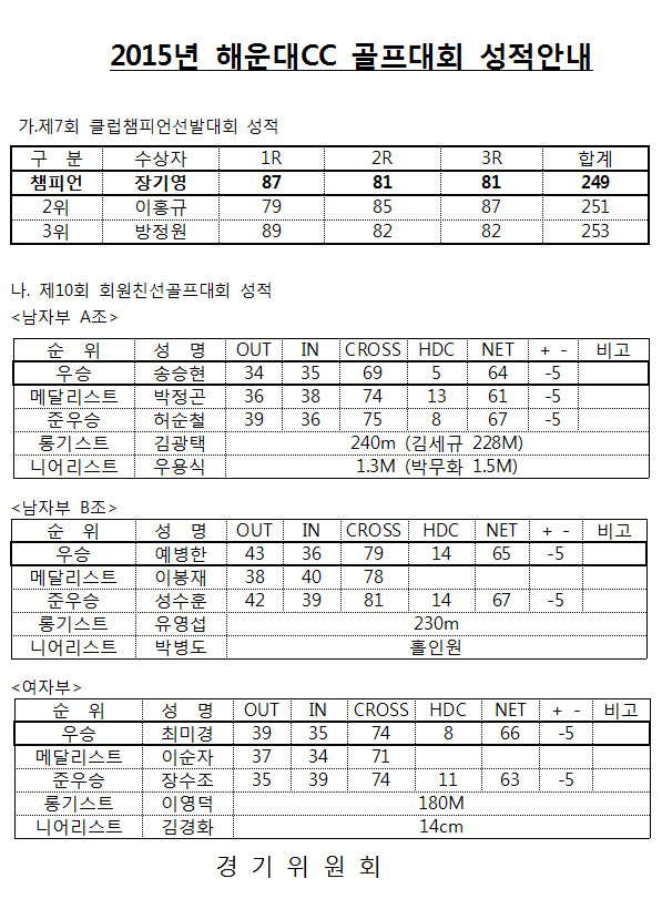 2015년 골프대회 성적안내