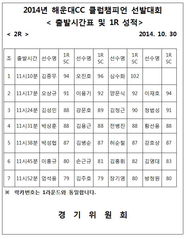 클럽챔피언 대회 1R 성적 및 2R 출발시간표