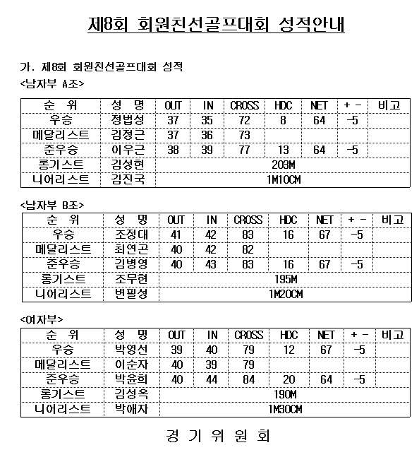제8회 회원친선골프대회 성적안내