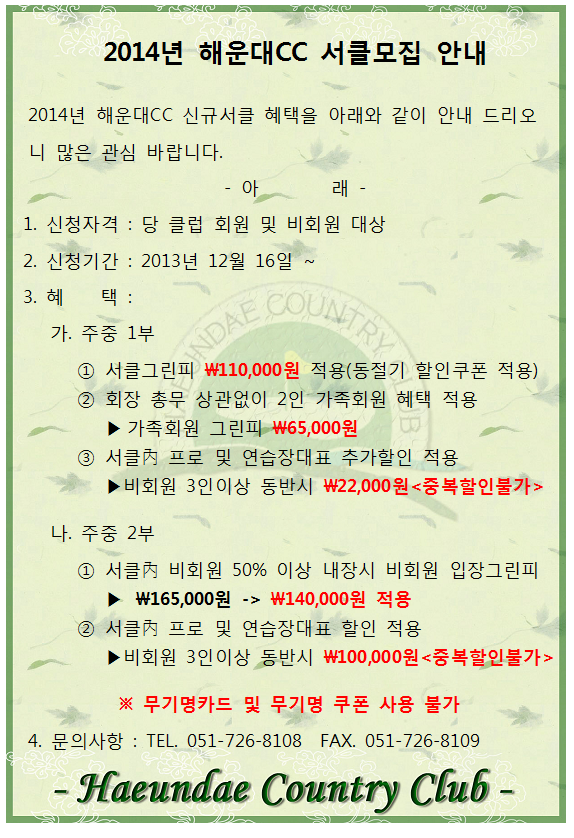 2014년 해운대CC 서클모집안내