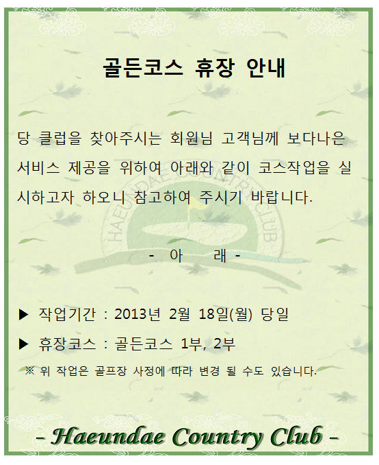 2월18일 골든코스 휴장 안내