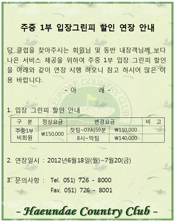 주중 1부 입장그린피 할인 연장 안내