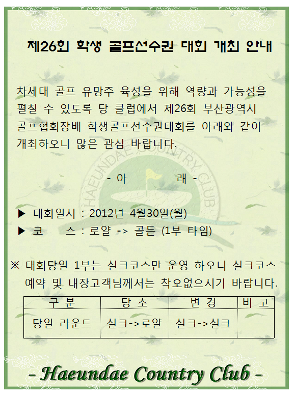 Copyright (c) 2005 HAEUNDAE COUNTRY CLUB. ALL RIGHT RESERVED.