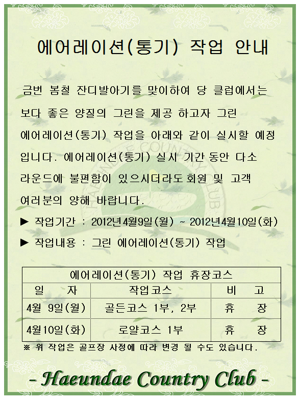 에어레이션 작업 안내