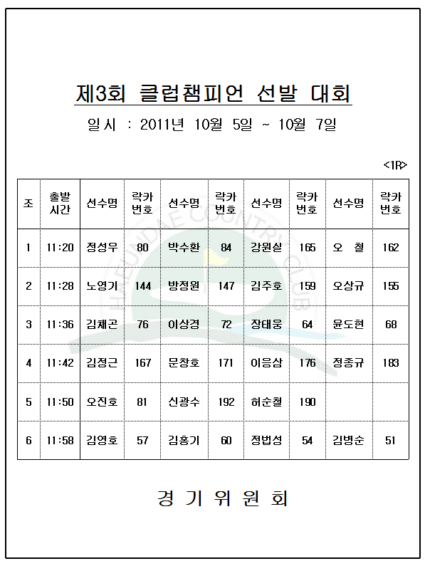 제3회 클럽챔피언 선발대회 조편성 및 락카번호