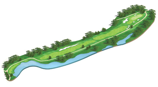 전체 코스 중 난이도와 비거리가 가장 높은 홀. 완벽한 전략과 정확한 샷만이 IP 좌측 67m의 벙커와 도그레그형 레이아웃을 극복할 수 있으며, 비거리에 욕심이 앞선다면 어김없이 rough의 위협을 받는 난코스. 치밀한 전략을 세운 '생각하는 골퍼'만이 승자의 미소를 지을 수 있는 홀이다.