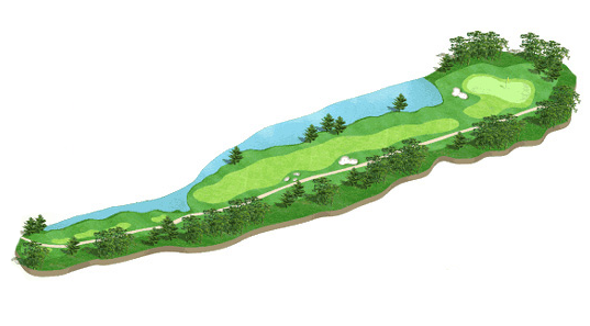 B/TEE에서 그린 앞 35m까지 펼쳐진 거대한 Lake, 그린 앞 카터형 벙커 등 헤저드를 극복 하기 위한 골퍼의 전략적인 샷과 모험심이 시험대에 오르는 홀이다.